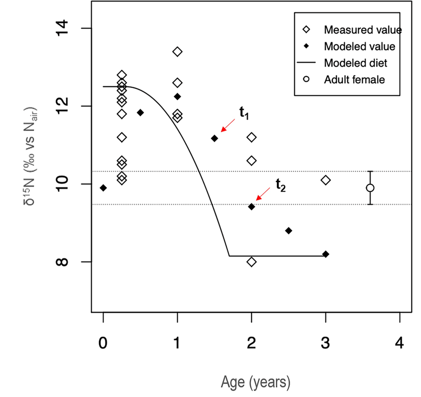 This paper explores the potential of combining different isotope systems from different tissues to improve resolution when reconstructing breastfeeding and weaning practices (BWP) in archaeology. Additionally, we tested whether changes in diet can be detected in deciduous teeth. Rib collagen samples from 22 infants/children from the archaeological site of Bacuranao I (Mayabeque, Cuba) were processed for nitrogen (δ¹⁵N) and carbon (δ¹³Cco) stable isotopes and assessed using a Bayesian model (WARN). In addition, enamel of 48 teeth from 30 infants/children were analyzed for oxygen (δ¹⁸Oen) and carbon (δ¹³Cen) stable isotopes. Data revealed that the timing of weaning cannot be characterized precisely by analyzing either δ¹⁸O or δ¹⁵N. While a depletion in both δ¹⁵N and δ¹³Cco is only evident after one year, the WARN model suggested that the weaning process started at around 3 months and ended around 1.7 years. Most teeth were enriched in δ¹⁸Oen compared to deciduous incisors, suggesting a breastfeeding signal. However, a high variability in δ¹⁸O was found between similar teeth from the same individuals. Higher enrichment in δ¹⁸Oen, and variability, was observed in tissues formed during the first six months of life. A δ¹³C enrichment of 1.0‰ was observed among deciduous teeth and ribs. While most individuals enriched in δ¹⁵N showed enrichment in δ¹³C, the δ¹⁸O values were more variable. Our data suggests that stable isotopes of deciduous teeth, especially δ¹³Cen, can be used to detect changes in diet during the weaning process. It is also possible that the δ¹⁸O enrichment observed in M1 is influenced by the effects of cooking techniques on weaning foods. The combination of multiple isotope systems and tissues overcome some of the limitations posed by single tissue approaches. Read the full article.